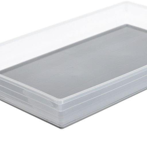 ✅Organizer wykonany jest z tworzywa sztucznego o transparentnym kolorze z szarą podstawą, dzięki czemu łatwo można zobaczyć, co znajduje się wewnątrz pojemnika.