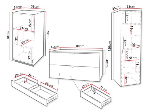 - Szafka pod umywalkę Aniabo 01: szerokość: 80 cm, wysokość: 42 cm, głębokość: 46 cm,