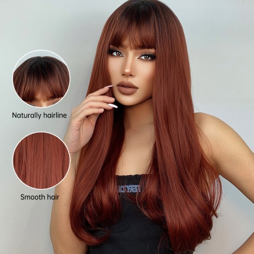 Длинный рыжий парик с челкой, естественный эффект