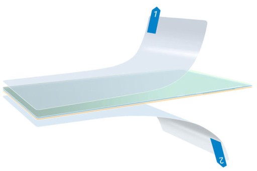 - Zdejmij powoli pierwszą zewnętrzną warstwę folii oznaczoną naklejką nr 1.