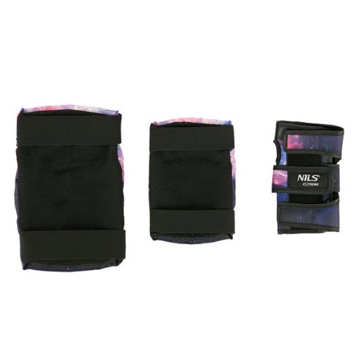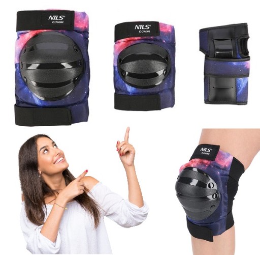 H734 Nils Extreme to zestaw ochraniaczy na nadgarstki, łokcie i kolana. Wykonany z wysokiej jakości materiałów. Skorupa zaprojektowana z mocnego i lekkiego tworzywa, które w maksymalnym stopniu zabezpieczają nadgarstki, łokcie i kolana przed urazami..
