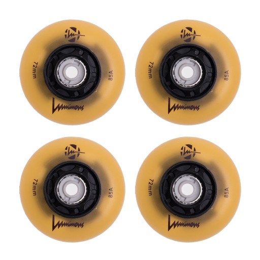 ŚWIECĄCE KÓŁKA DO ROLEK LUMINOUS LED 72MM/85A 4SZT - Pozwolą Ci na wymianę starych, zużytych kół Twoich rolek, dzięki czemu wzrośnie komfort jazdy oraz bezpieczeństo. Mocne i przyjemne swiatło które emitują, sprawi że rolki zyskają niepowtarzalny wygląd.