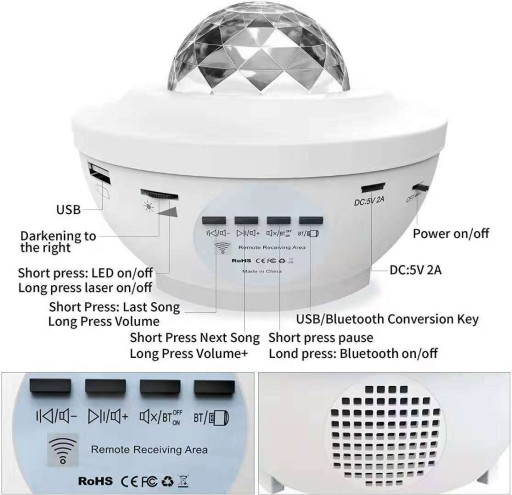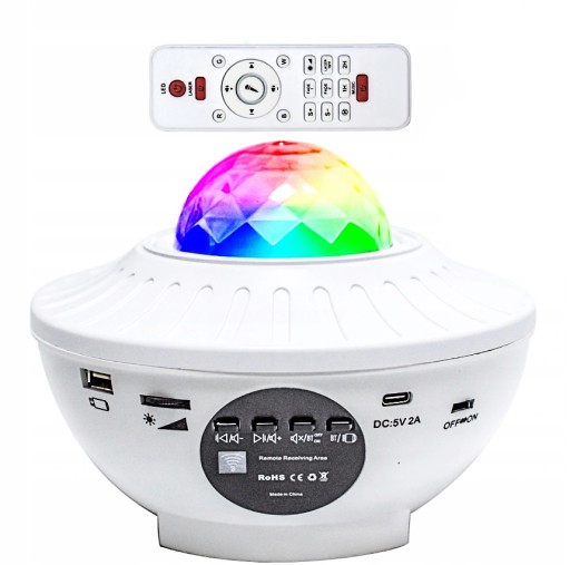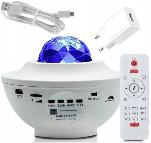 LAMPKA PROJEKTOR GWIAZD LED BLUETOOTH USB BIAŁY