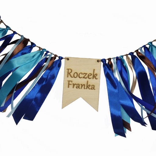Długość całego proporczyka ze wstążkami ok 75 cm + około 1 metr sznurka do zamontowania na krzesełko.