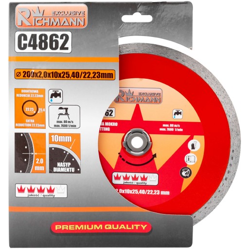 TARCZA DIAMENTOWA PEŁNA CIENKA DO CIĘCIA NA MOKRO 200 mm RICHMANN.