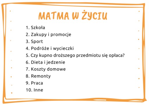 „Matma w życiu” to zbiór zadań życiowych dla uczniów klas 7-8 do samodzielnej nauki matematyki. Jesteśmy pewni, że z większością zadań poradzą sobie już także uczniowie klasy 6.