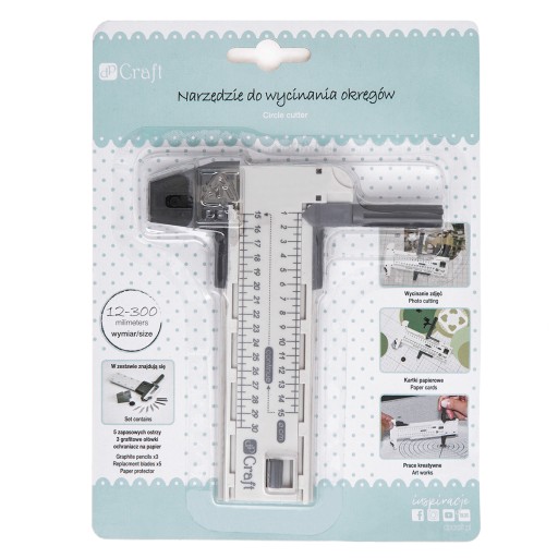 Praktyczne narzędzie do wycinania okręgów z papieru o różnej średnicy. Świetnie sprawdzi sie przy tworzeniu kompozycji w projektach typu: cardmaking, scrapbooking czy home decor.