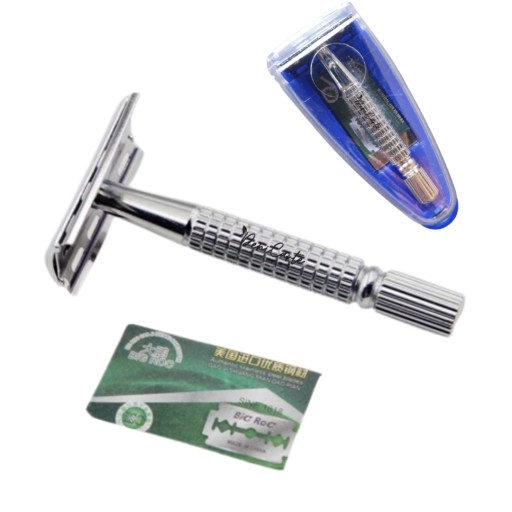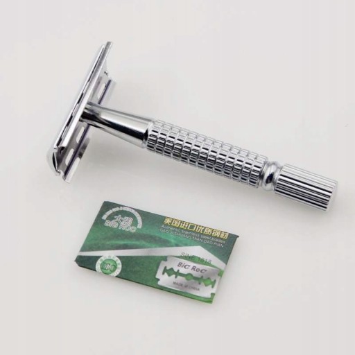 Tradycyjna metalowa maszynka do golenia na żyletki