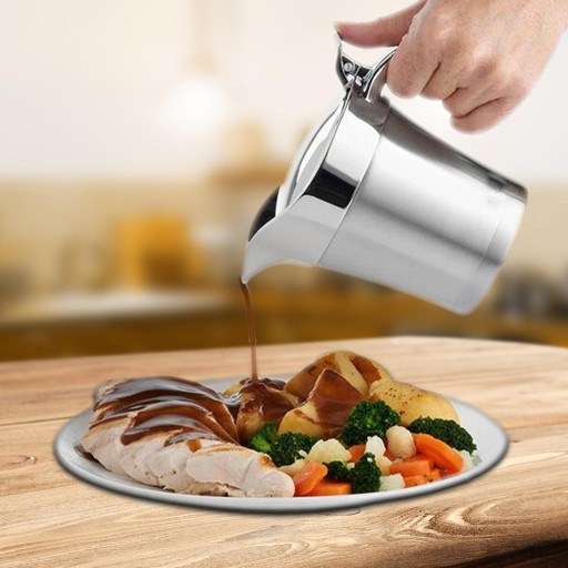 Utrzymuje gorące sosy sosowe i budyń na stole.
