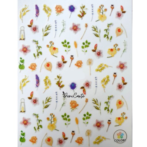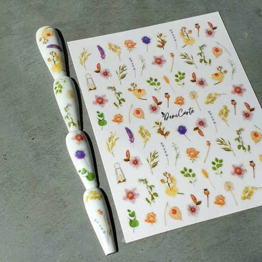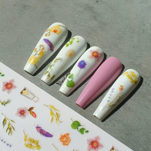 ✔️Delikatny wzór w letnich odcieniach zieleni, żółtego, fioletu, czerwieni i niebieskiego. Najlepiej prezentuje się na jasnych, pastelowych paznokciach.
