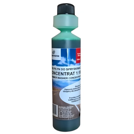 Koncentrat płynu do spryskiwaczy przeznaczony do napełniania zbiorników spryskiwaczy szyb samochodowych w okresie letnim. Skutecznie myje i usuwa plamy po insektach i innych zabrudzeniach drogowych z powierzchni szyb, lusterek i reflektorów. Nie pozostawia smug ani zacieków poprawiając tym samym widoczność podczas jazdy. Zastosowana kompozycja zapachowa o nucie cytrusowej zapewnia przyjemny, odświeżający zapach we wnętrzu samochodu po spryskaniu szyby. opakowanie (250ml) wystarczy do przygotowania 25l gotowego płynu.