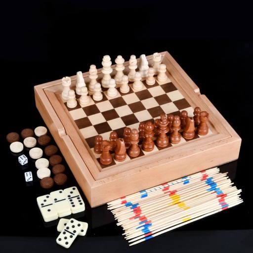 Cecha: Szachy 5 w 1 z planszą do przechowywania.