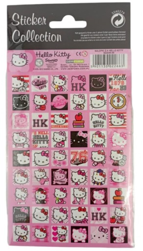 Udekoruj swoje rękodzieło lub rysunki za pomocą naklejek z ulubionymi postaciami z bajki "Hello Kitty". Zestaw składa się z arkusza naklejek z 54 naklejkami.