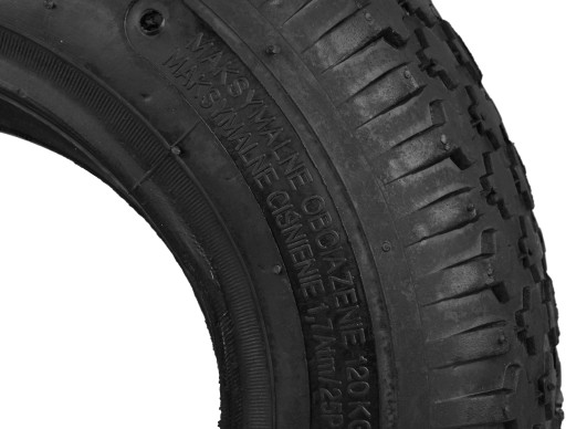 Opona z dętka 4.80 / 4.00 - 8 2pr do taczki, wózka Opona z dętką do taczki o maksymalnym obciążeniu do 120 kg. Wykonana z wysokiej jakości materiałów. Cechy produktu: średnica zewnętrzna 390 mm gumowa opona z dętką maksymalne obciążenie 120 kg opona 2 płócienna ciśnienie maksymalne 1.7 bar / 25 psi wysoka jakość materiałów
