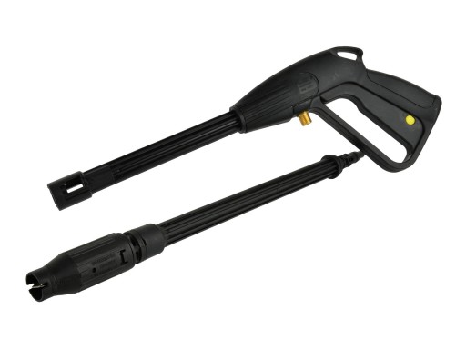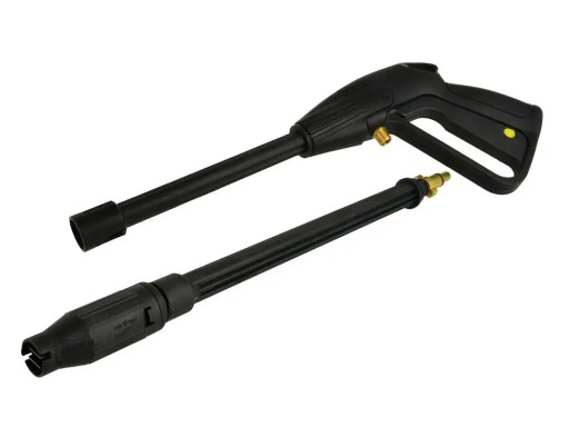 Pistolet z lanca do myjki wysokociśnieniowej (metalowe złącze) Pistolet z lancą do myjki wysokociśnieniowej z matalowym złączem, wyposażony w regulację szerokości strumienia. Dzięki zastosowaniu typowego gwintu (14 mm) pistolet pasuje praktycznie do wszystkich myjek ciśnieniowych dostępnych na polskim rynku. Stosowany jako zamiennik do myjek ciśnieniowych marek takich jak np.: Karcher, Bosh, Makita, Variant, Lavor, Matrix, Kraftdelle, Black & Decker, oraz wiele innych wyposażonych w gwint 14mm Cechy produktu: możliwość regulacji strumienia wody trwałe matalowa złącze lancy starannie wykonany maksymalne ciśnienie robocze wynosi 150 bar możliwość pracy z wodą osiągającą 60°C blokada zapobiegająca przypadkowemu naciśnięciu spustu maksymalny przepływ wody 15 l/min