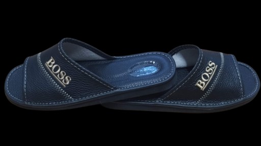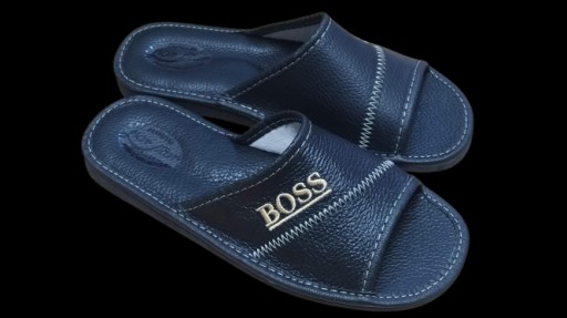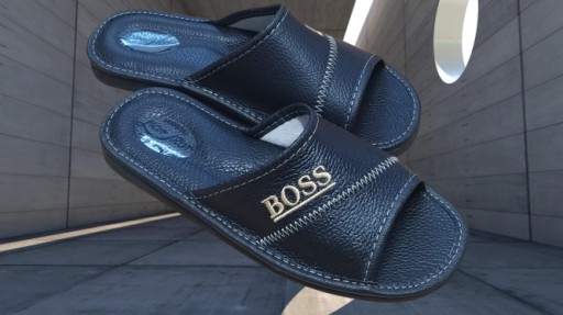 PANTOFLE MĘSKIE SKÓRZANE KAPCIE LACZKI CIAPY Model Męskie czarne Boss