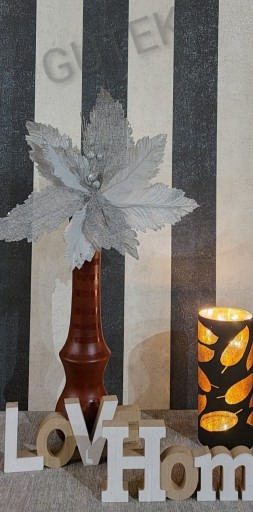 Tapeta w pasy w stylu glamour z pięknie mieniącymi się drobinkami wtopionego brokatu nada wnętrzu oryginalny styl i design.