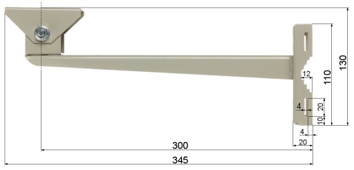Uchwyt stalowy, malowany proszkowo, przeznaczony do zamocowania na słupach obudów kamer lub samych kamer.