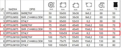 -Rozmiar koła: 75 mm