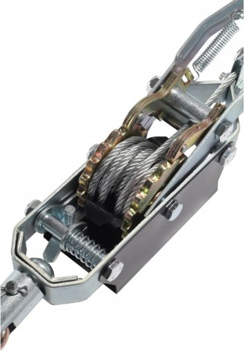 Wciągarka wyposażona została w 2-trybowy mechanizm blokujący, stalową line o średnicy 6 mm i długości 2,5 m, co w połączeniu z wytrzymałymi 3 hakami generuje siłę uciągu na poziomie 4000 kg.