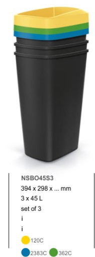 Контейнер для разделения мусора, 3 фракции по 45 литров каждая.