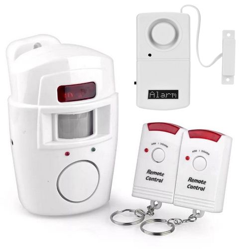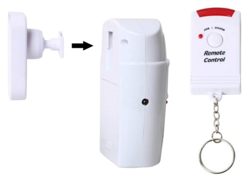 Alarm czujnik detektor ruchu bezprzewodowy 105 dB + 2 piloty + kontaktron magnetyczny z alarmem