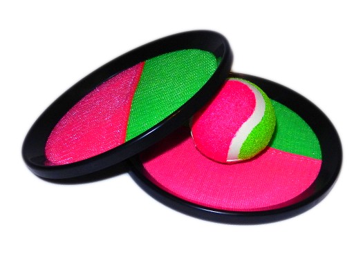 - W skład zestawu wchodzą dwie paletki z rzepami oraz piłka jak do tenisa