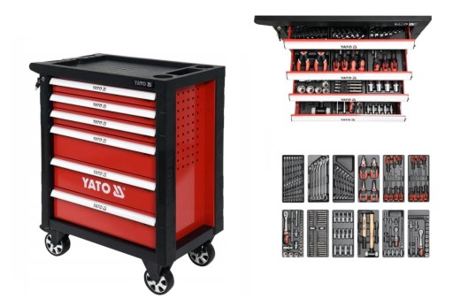 Szafka serwisowa z narzędziami marki YATO 177 elementów, umożliwia tworzenie odpowiednich miejsc pracy, gdzie wszyskie najpotrzebniejsze narzędzia są w jednym miejscu. Niezbędna w każdym warsztacie samochodowym, serwisie jak iw przydomowym garażu. Klasyczny elegancki design oraz wysoka jakość narzędzi YATO.