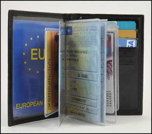 Zmieści 8 kart bankomatowych lub dokumenty tego formatu oraz dowód rejestracyjny, legitymację szkolną itp. Całość obrazują poniżej przedstawione zdjęcia.