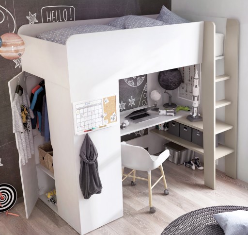 Łóżko piętrowe TOM to coś więcej niż tylko miejsce do spania. To jeszcze biurko i szafa! Łóżko piętrowe TOM zostało zaprojektowane specjalnie do niedużego pokoju dziecięcego lub młodzieżowego. Dzięki swojej wielozadaniowości zajmuje niewiele miejsca a dostarcza wiele praktycznych rozwiązań.