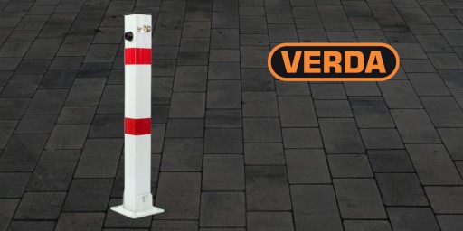 Oferujemy Państwu wysokiej jakości składaną blokadę parkingową firmy VERDA, zamykaną na zamek. Wysokość maksymalna blokady to 60 cm. Czerwone paski są odblaskowe. W zestawie materiały montażowe.