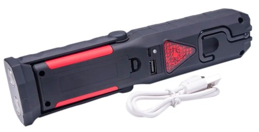 Wielofunkcyjna latarka może służyć jako lampa warsztatowa, latarka lub lampa kempingowa.