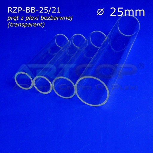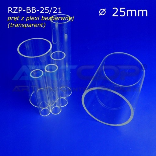 Rura z plexi bezbarwnej, transparentnej o średnicy zewnętrznej 25mm i średnicy wewnętrznej 21mm. Grubość ścianki rury to 2mm.