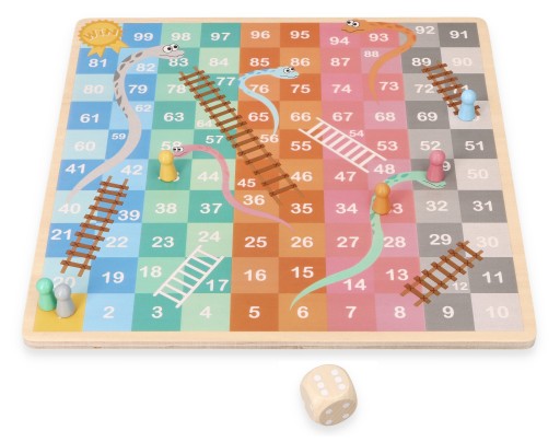 Druga gra to tradycyjna gra z Wielkiej Brytanii 'Węże i drabiny". W rozgrywce może brać udział maksymalnie 6 osób. Należy ustawić pionki na polu z numerem 1, a następnie przesuwać się do mety po kolejno ponumerowanych polach zgodnie z ilością oczek wskazanych przez kostkę. Ale uwaga w tej grze można łatwo wspiąć się w górę, ale i spaść wiele pól w dół. Wszystko za sprawą drabin - te przenoszą nas w górę, lub węży, po których niestety zsuwamy się w dół.
