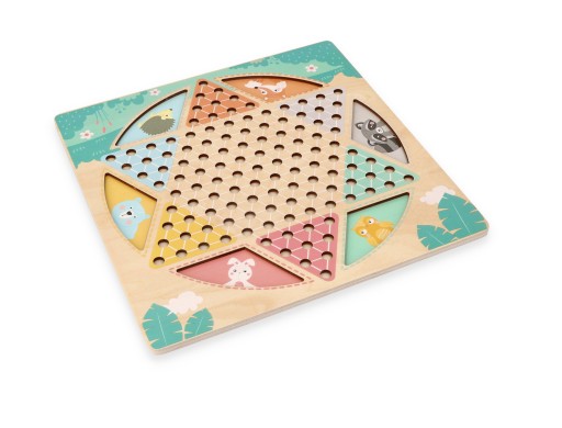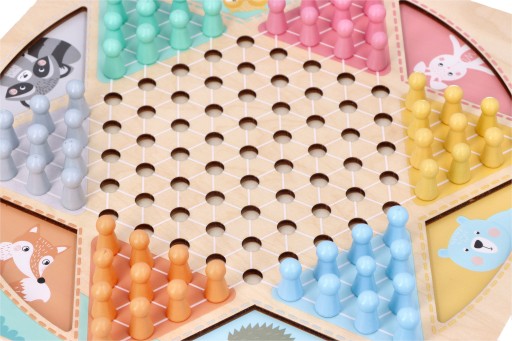 Dzięki temu, że mamy tutaj aż 6 pól w grę może grać od 2 do 6 graczy. Im więcej osób gra tym gra jest trudniejsza i ciekawsza. Grę rozpoczyna się od ułożenia pionków danego koloru w jednym z kolorowych pól. Następnie należy tak przesuwać pionki, aby ustawić je wszystkie po przeciwnej stronie. Kto pierwszy przesunie tam wszystkie swoje pionki wygrywa. Aby przyspieszyć dojście do celu można przeskakiwać pionki swoje i przeciwników (tak, jak w warcabach). W grze można blokować przeciwnika, utrudniać jego ruchy oraz jak najlepiej wykorzystywać możliwości na planszy. Świetna zabawa gwarantowana.