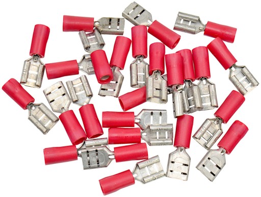 Wsuwka nasuwka izolowana z antywibracyjną tulejką miedzianą, 1.5-6.3/0.8, PVC, przekrój 0.25-1.5 mm2, żeńska, czerwona, 25szt