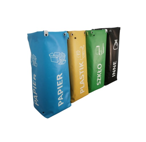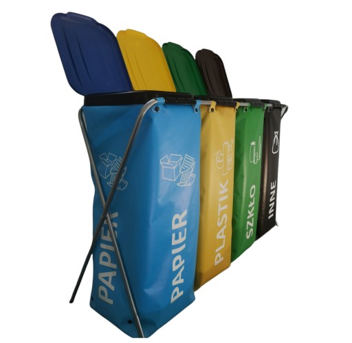 Przykrywki w trzech kolorach wykonane tworzywa sztucznego - Kolory przykrywek są w kolorach worków (zielony, niebieski, żółty, czarny)