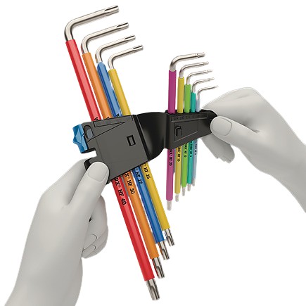 - Wysokiej jakości zestaw trzpieniowych kluczy kątowych do śrub i wkrętów z gniazdem TORX®.