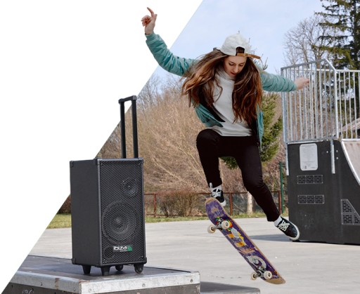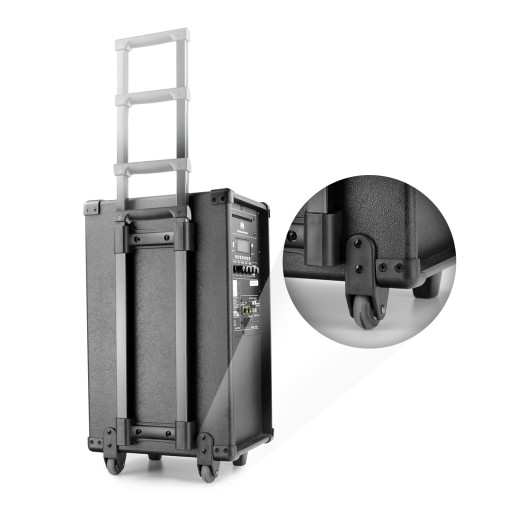 Charakteryzuje się nie tylko wbudowanym akumulatorem. To oczywiście czyni go niezwykle mobilnym, ale to nie wszystko. PORT8MINI jest wyposażony w wysuwaną rączkę i kółka, dzięki czemu możesz go łatwo zabrać ze sobą i toczyć za sobą. Idealny do codziennego użytku na targach, pokazach imprezach plenerowych klubach fitness czy po prostu do aktywnych zabaw z dziećmi.