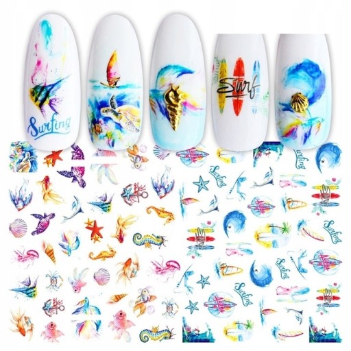 ✔️Bardzo zróżnicowane wzory - fale, deski surfingowe, muszelki, rybki, koniki morskie pozwalają na samodzielne tworzenie cudownych wzorów i licznych stylizacji na paznokciach zarówno w warunkach domowych, jak i profesjonalnie.