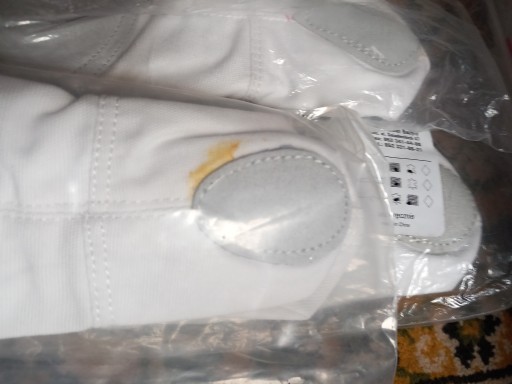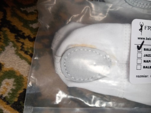 ,Ta partia baletek posiada na piętach mniejsze lub większe przebarwienia od kleju (przykłady na zdjęciach) . Ma to znaczenie tylko estetyczne przy pierwszym kontakcie. Potem to miejsce i tak się ubrudzi.