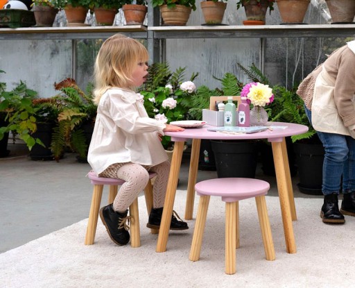 - Wymiary krzesełka: średnica siedziska: 25 cm, wysokość: 27 cm.