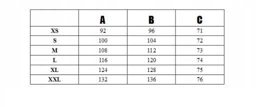 Tolerancja +/- 2 cm. Wartości podane w tabeli to rzeczywiste wymiary produktu.