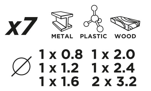 Wiertła precyzyjne GRAPHITE (nr ref. 55H075), z zakresem średnic 0.8 - 3.2 mm. Zestaw zawiera 7 szt., wykonane ze stali szybkotnącej HSS. Idealnie sprawdzą się podczas wiercenia w drewnie, tworzywie sztucznym lub miękkim metalu.