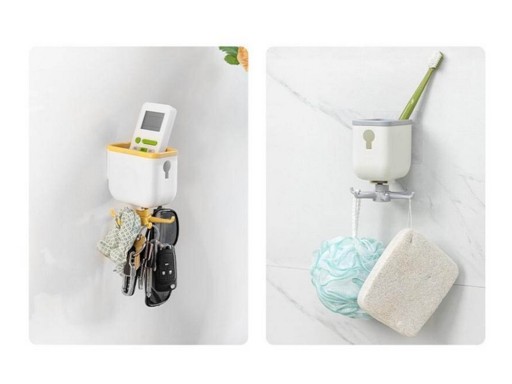 Wielofunkcyjny wieszak z pojemnikiem, idealnie nadaje się do przechowywania rozmaitych, często używanych sprzętów domowych.