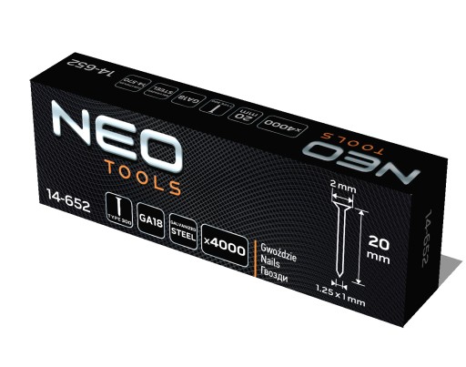 Gwoździe galwanizowane do zszywacza pneumatycznego (14-570), GA18, Typ 300 (F), długość 20 mm, 4000, NEO 14-652