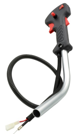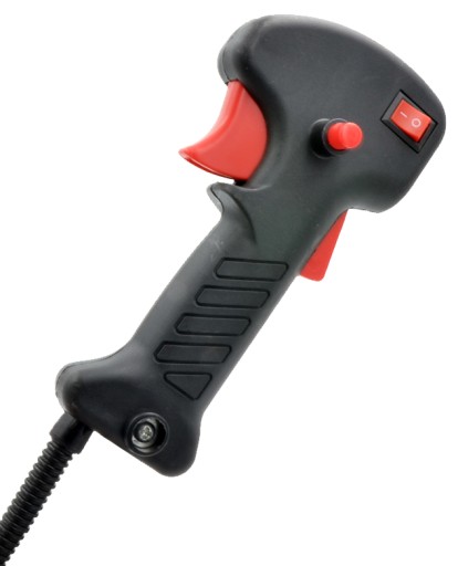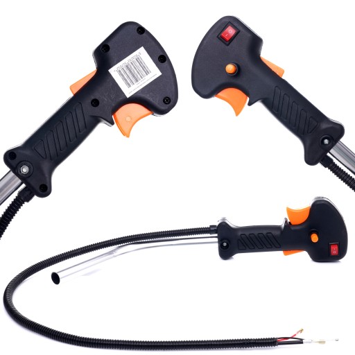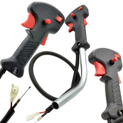 Rczka ze spustem przeznaczona do kos spalinowych. Rączka cechuje się wykonaniem dobrej jakości, wygodną w trzymaniu rękojeścią oraz długim zakresem nacisku spustu. Przewód umożliwi zamontowanie jej w większości kos spalinowych dostępnych na polskim rynku.