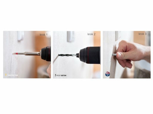 - pierścień w kolorze czerwonym wskazuje idealną głębokość wiercenia