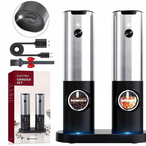 Elektryczny młynek do soli i pieprzu z ładowalną podstawą i oświetleniem LED