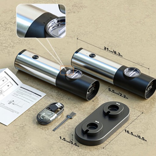 - Możliwość ładowania: Dzięki stacji ładującej można ładować 2 młynki do pieprzu za pośrednictwem interfejsu USB typu C, 2,5 godziny mogą być w pełni naładowane, a o krótkim czasie mielenia 200-300 razy. Nie trzeba kupować dodatkowych baterii.